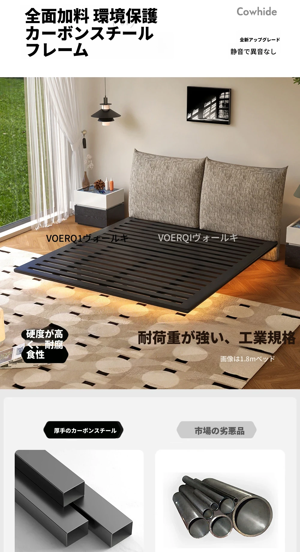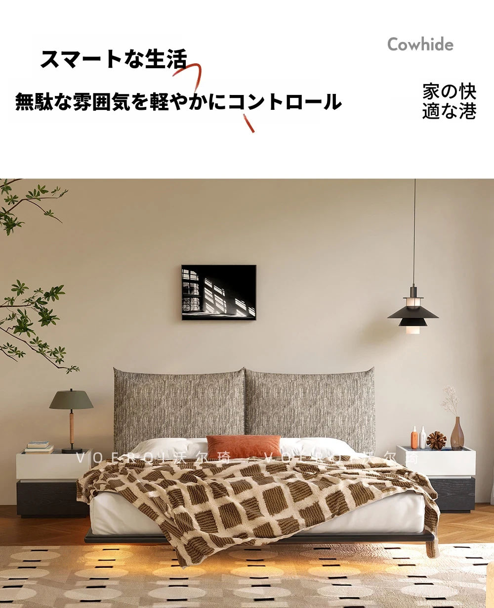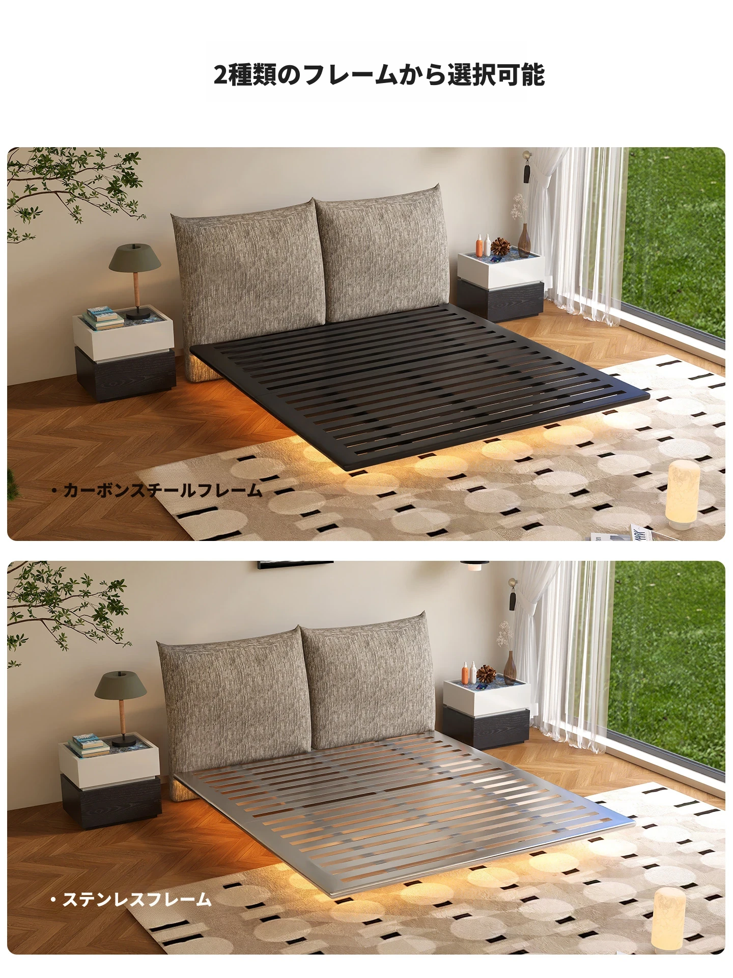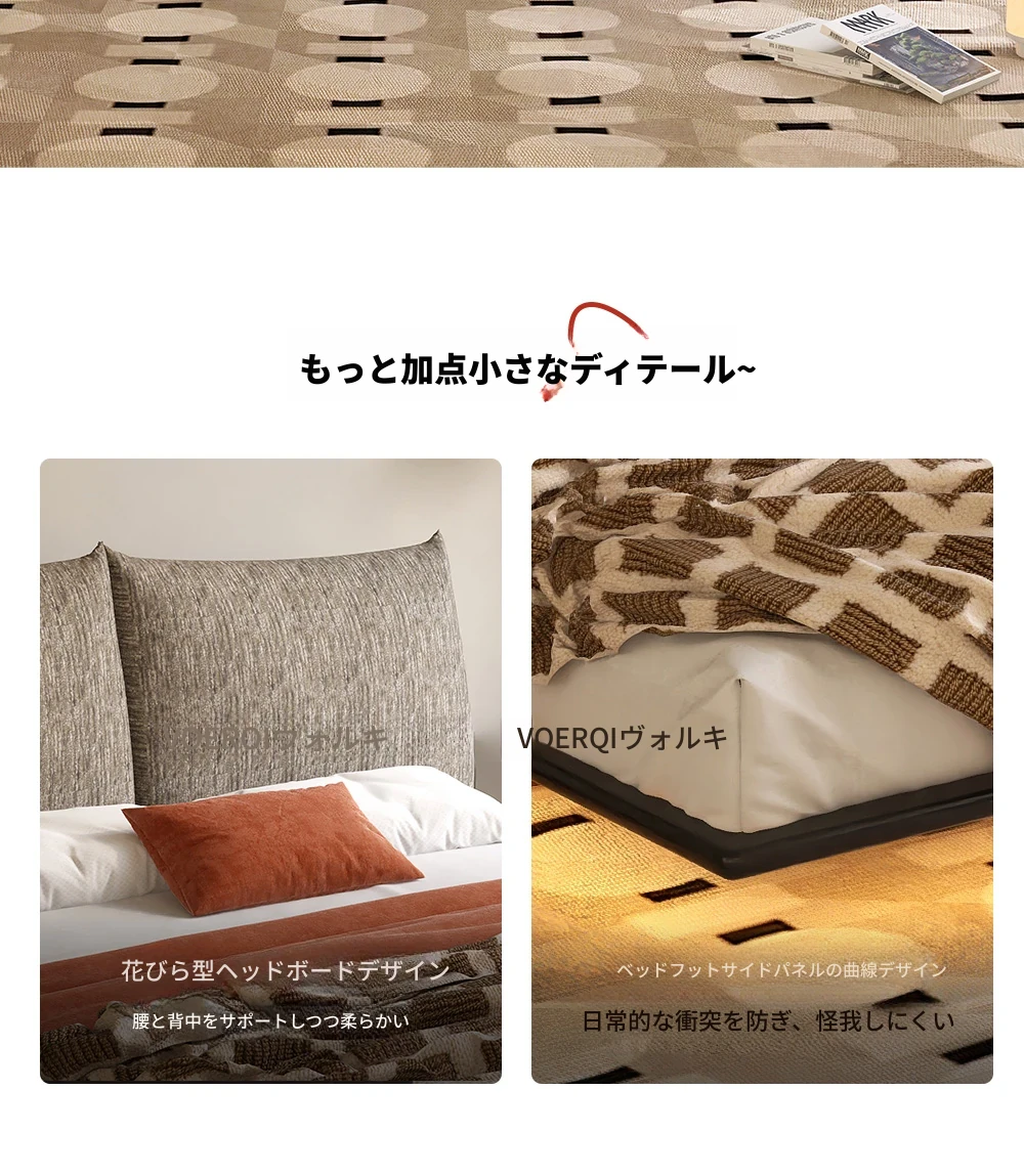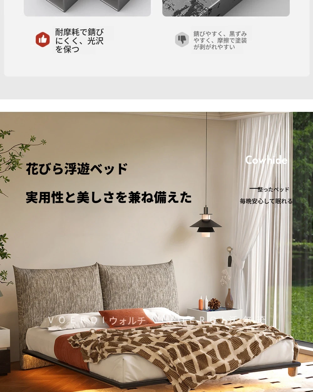 ウォルキーフレンチラグジュアリー シェニール花びらベッド ファブリック シンプルなダブル 不銹鋼薄型ヘッドボード 浮遊型ベッドで、優雅な寝室空間を演出!