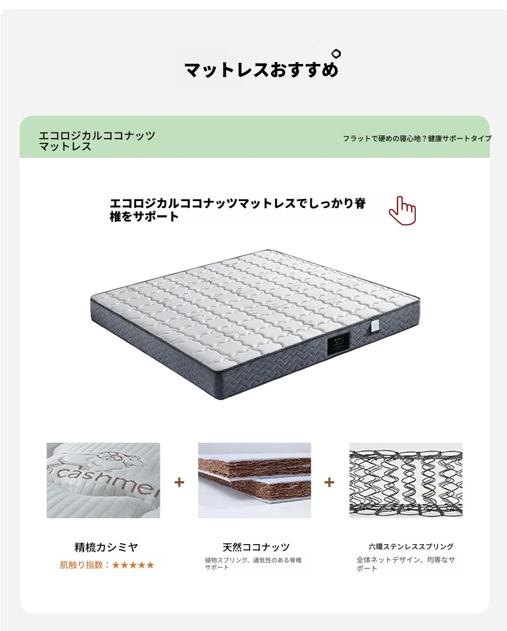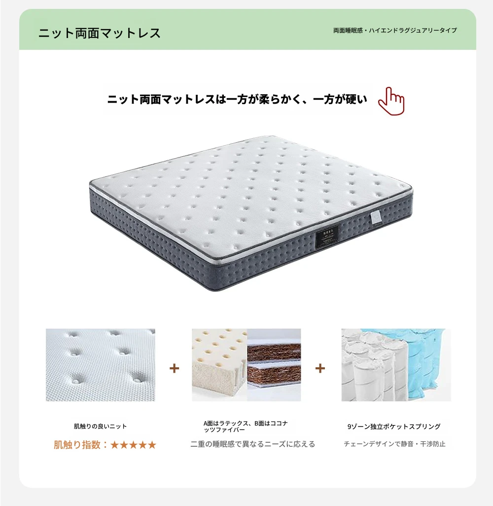 【インポートシュニール】シングルベッド+七星級ラテックスココナッツマットレス センサーライト付き
