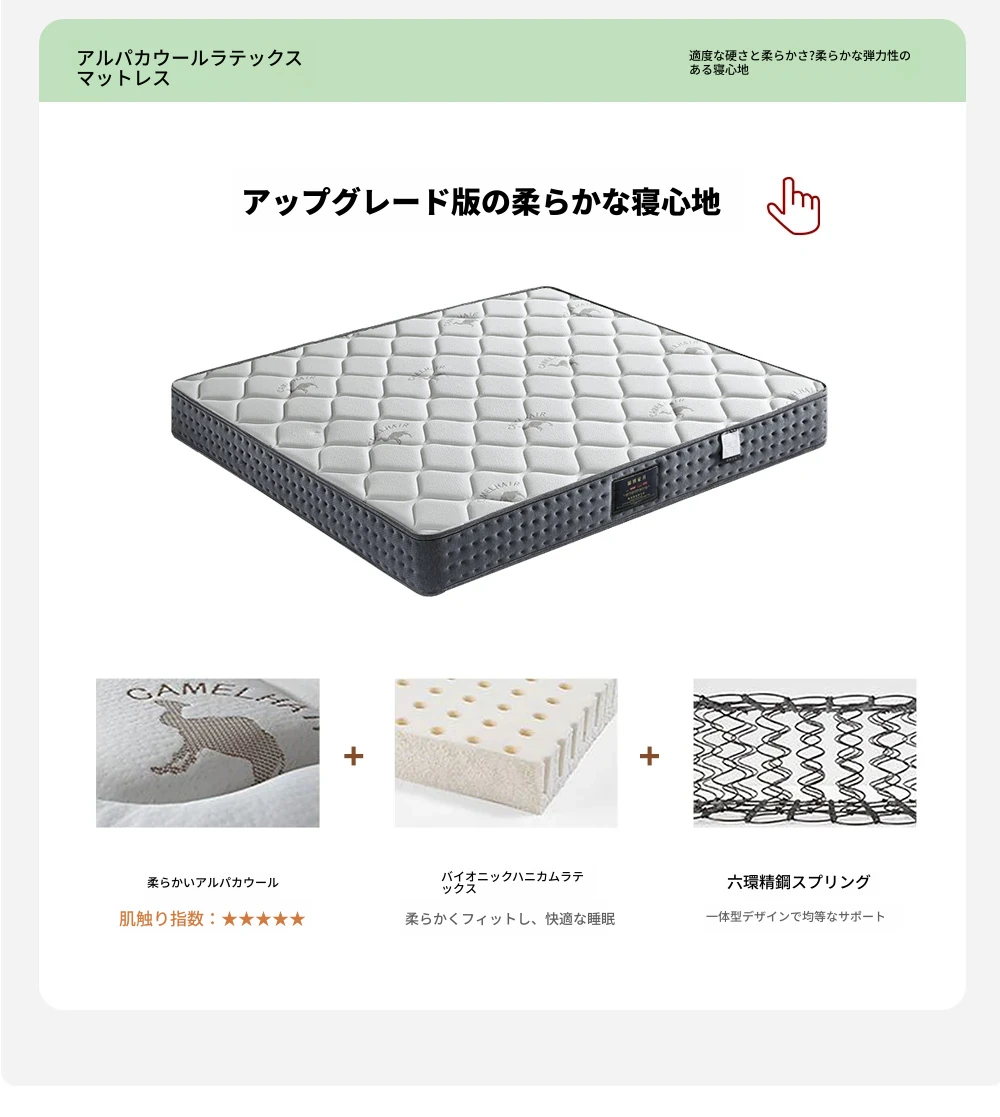 【インポートシュニール】シングルベッド+五星級キャメルウールラテックスマットレス センサーライト付き