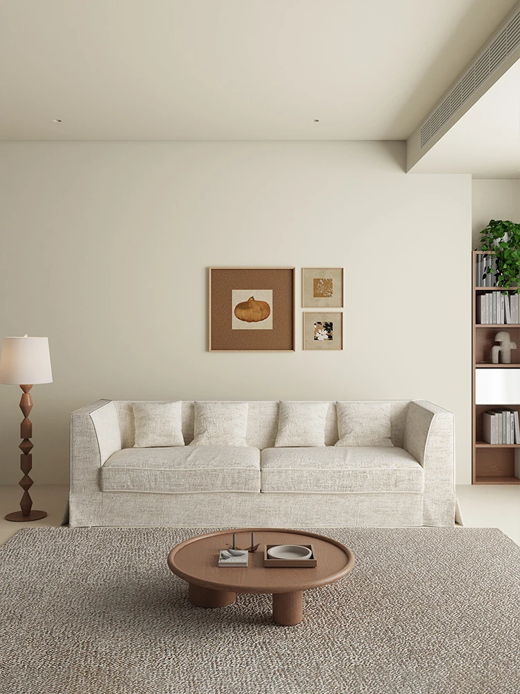 侘寂の美学を取り入れた和風布製ソファー!シンプルでスタイリッシュなデザイン、狭いリビングにもぴったりの三人掛け棉麻ダウンソファ。居心地の良い民宿スタイルを実現します。