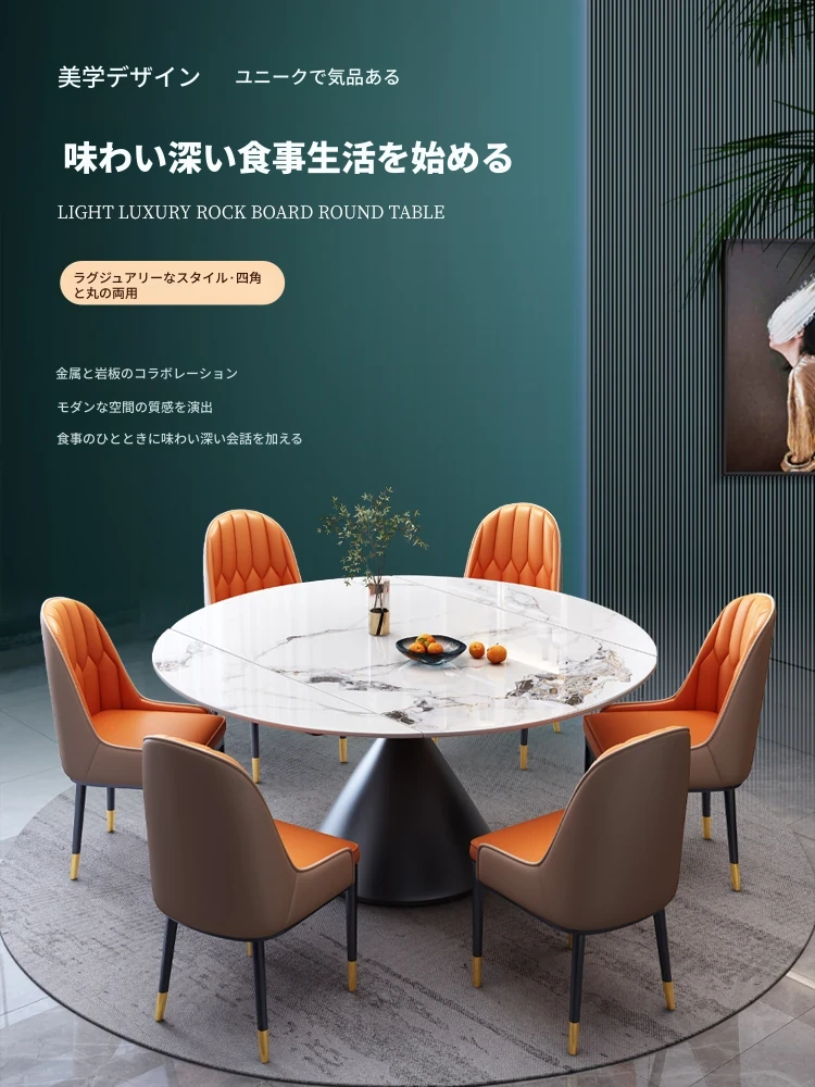 高級感漂う回転式岩板ダイニングテーブル&チェアセット - スリムで伸縮可能、四角形と円形の2WAYデザイン!現代的でシンプルなスタイルで、家族や友人との食事を特別なひと時に。