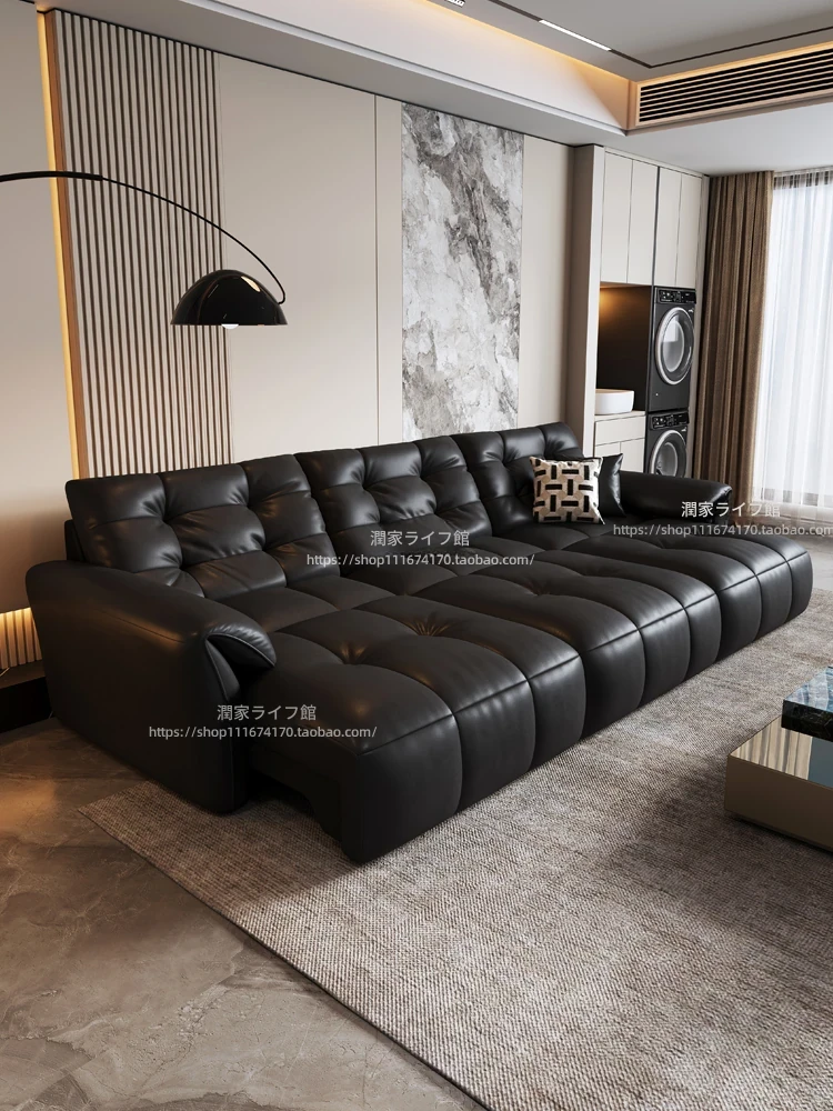 壁に寄りかからない電動ソファベッド!スマート伸縮機能搭載の多機能真皮牛革製、家庭用シアターに最適な3人掛けリビングソファ!快適さとスタイルを兼ね備えた一品です。