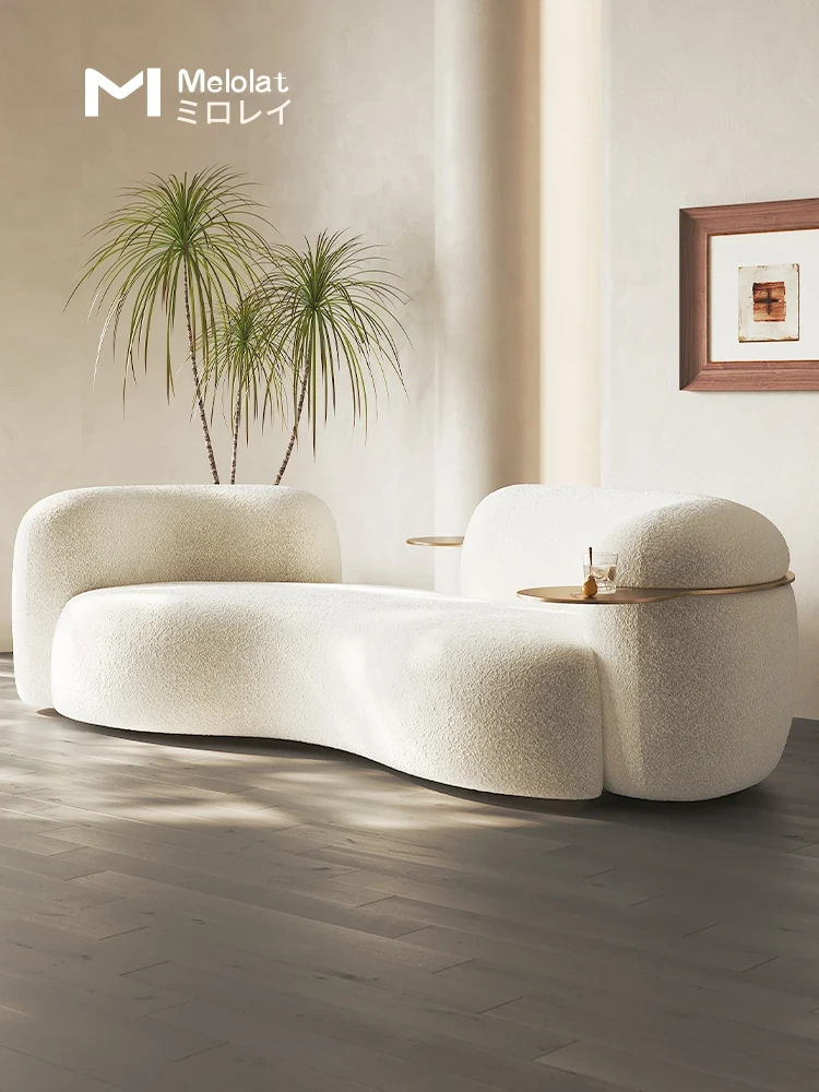 メロラット軽奢フレンチスタイルのエレガントなデザイン、アーチ型ソファ|クリーミーなイタリアン美容院の受付にぴったり!快適さとスタイルを兼ね備えた、あなたの空間をグレードアップする一品です。