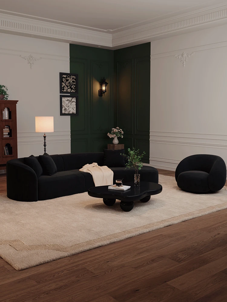 フレンチビンテージブラックソファー|中華風リビングにぴったりのラグジュアリー曲線デザイン|美容院・休憩スペース・接客エリアにも最適なトレンディなアイテム!