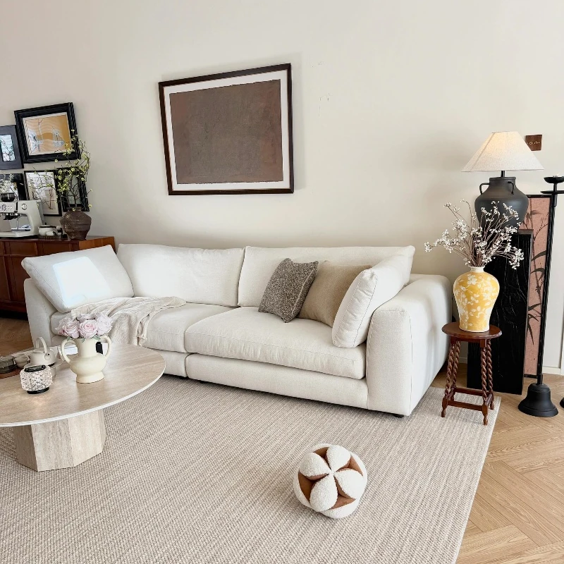 バイセ 侘寂スタイルの布製ソファ モダンでシンプルなデザイン イタリアンミニマリズムのリビング用ソファ 家庭にぴったりの快適な布製ソファ