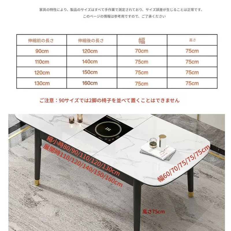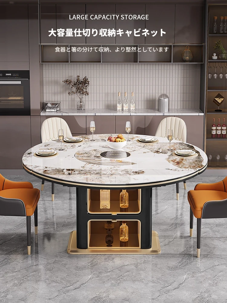 軽やかなラグジュアリー、コンパクトな岩板円形ダイニングテーブル。内蔵回転プレートと電磁調理器付き、伸縮可能な大理石製の可変式円卓セットで、小さな空間でも優雅な食事体験を!