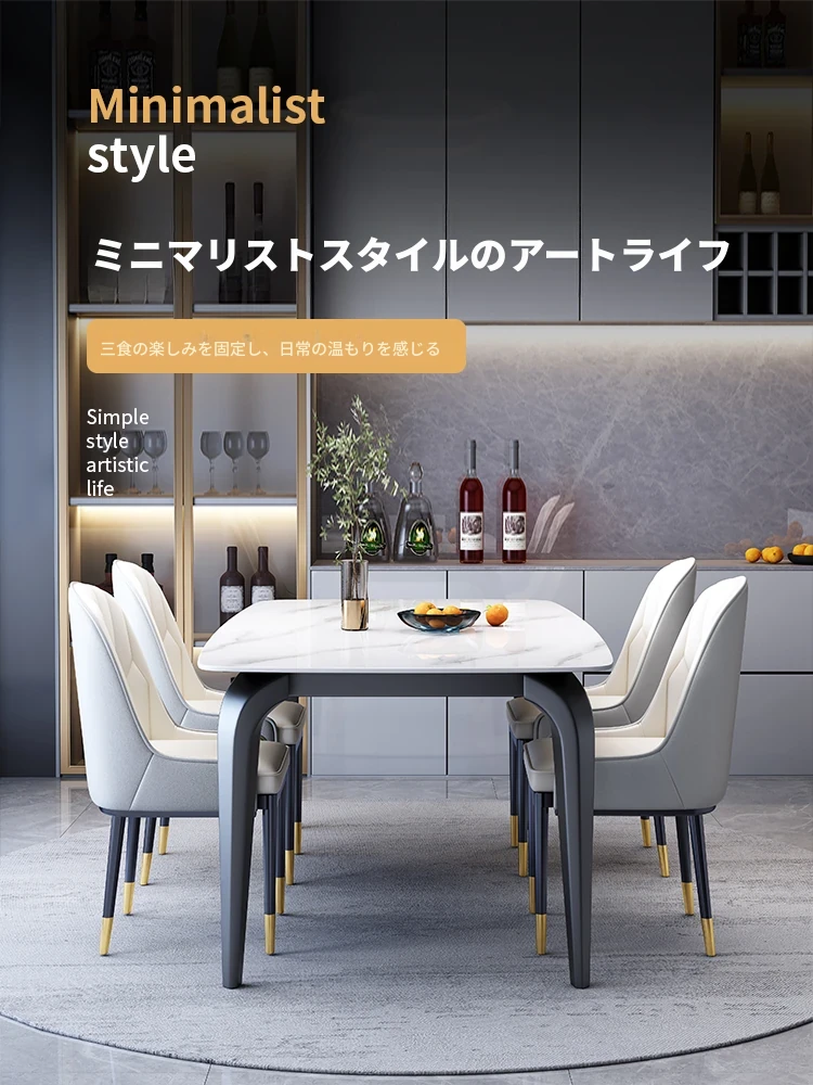 軽やかな贅沢感のある岩板ダイニングテーブルセット - モダンでシンプルなデザイン、小スペース向けの長方形超クリスタルストーン製テーブル。食事を楽しむための理想的な選択!